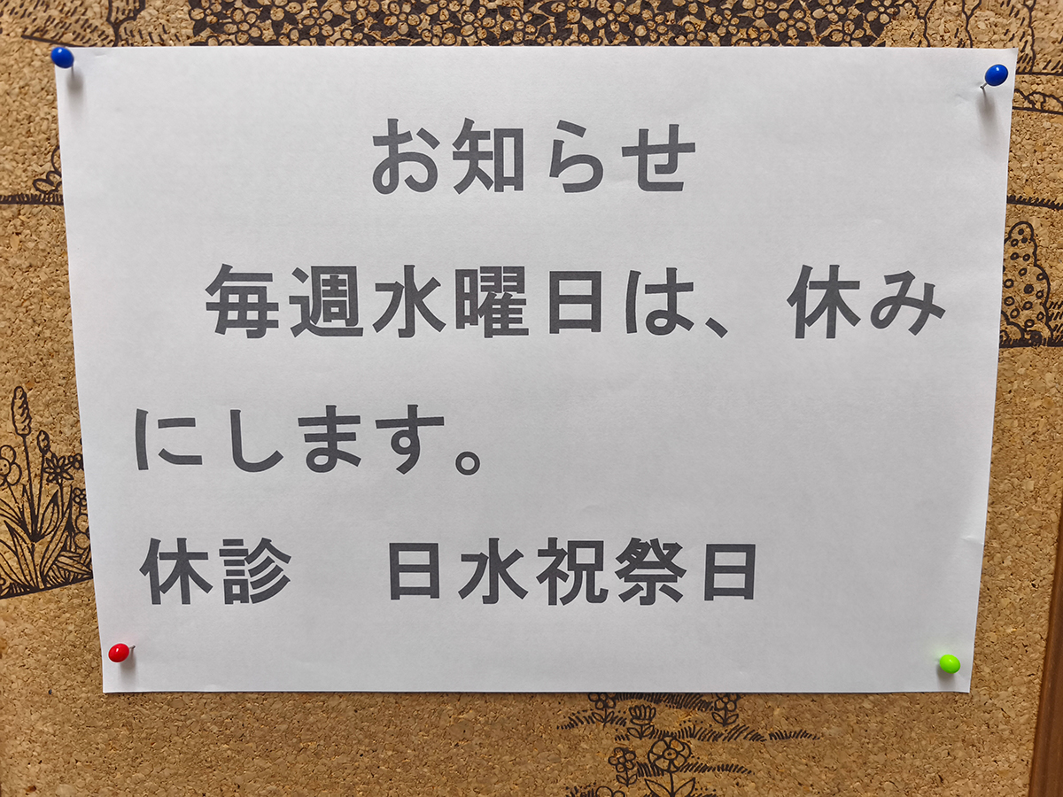 受付時間:月曜 ・火曜・木曜・金曜・土曜 9:00~19:00水曜日・日曜・祝祭日 休診